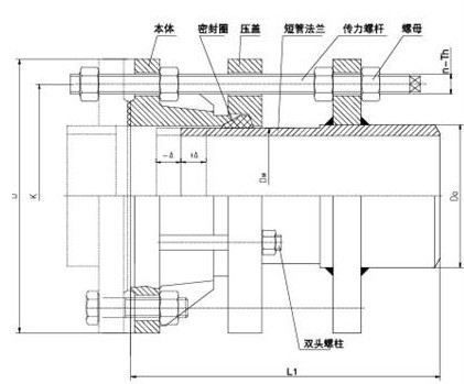 雙法蘭傳力接頭:由本體,密封圈(quān),壓蓋,伸縮短管(guǎn)等主要部件組成。該產品適用於(yú)兩邊均為法蘭連接的管道中,安裝時調節產品兩端的法蘭的安裝長度,對角(jiǎo)均勻擰緊壓(yā)蓋螺栓(shuān),使其成為一個整體,並有一定的(de)調節量,方便安裝維修時,根據現場尺寸進行調整(zhěng)。在工作時可以反(fǎn)軸向推(tuī)力(lì)傳遞至(zhì)整個管道。適用於輸送海水、淡水、冷(lěng)熱水、飲用水、生活汙水、原油(yóu)、燃油、潤滑油、成品油、空氣、煤氣、溫度不高於250度的蒸汽和顆粒粉狀等介(jiè)質。